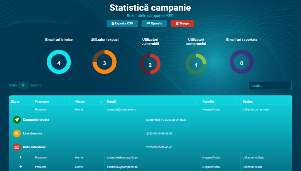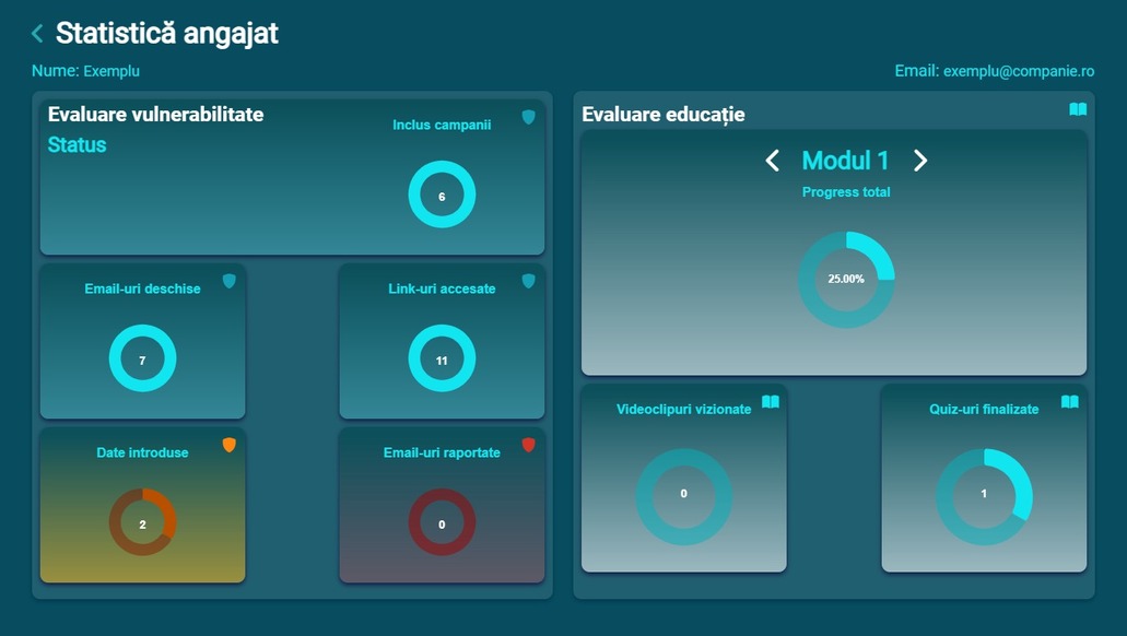 Siguranță pe Net îți oferă un mediu de testare avansat, unde angajații sunt evaluați prin simulări realiste de atacuri cibernetice. Testele de phishing sunt actualizate constant, reflectând cele mai noi metode folosite de atacatori.